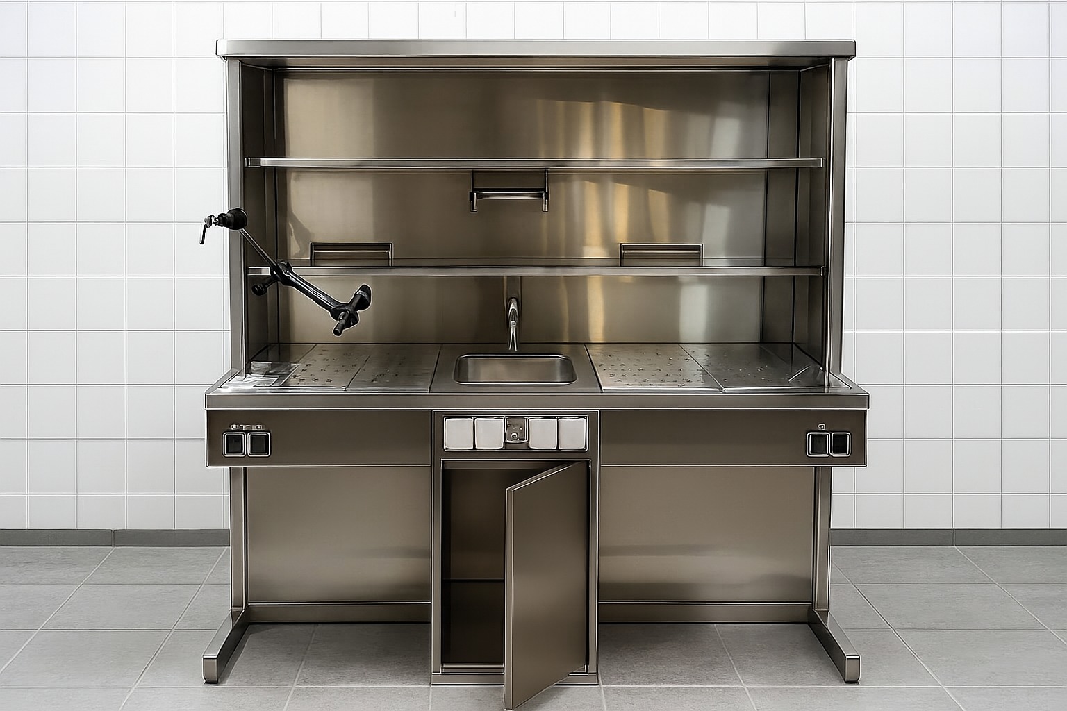 Профессиональное решение для работы с гистологическими препаратами и агрессивными средами. Полностью изготовлен из нержавеющей стали AISI 304 с интегрированной вытяжной системой.